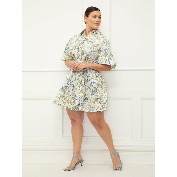 Eloquii Elements Women S Plus Size Button Down Dress With Flounce Walmart Com